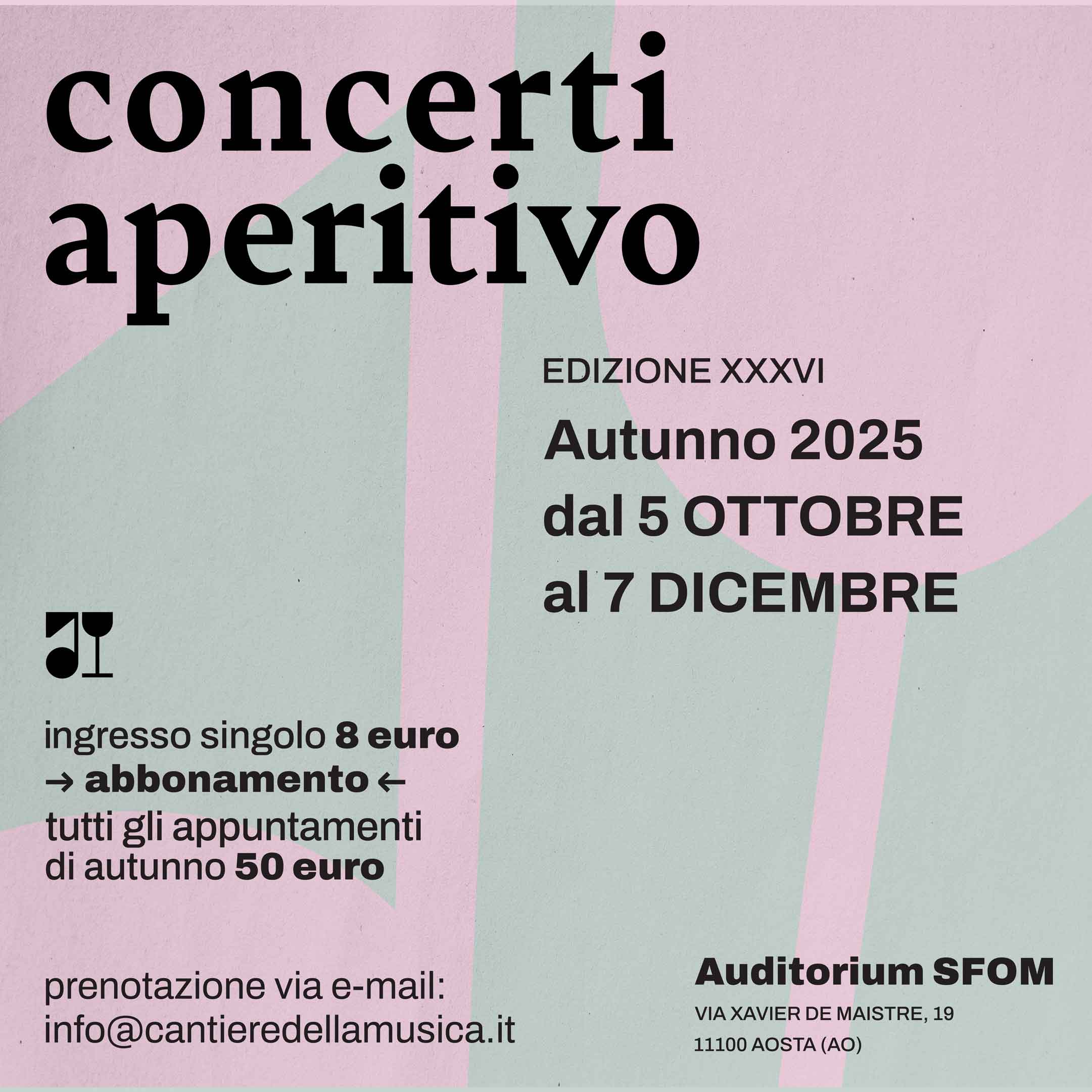 L’edizione autunnale si svolgerà presso l’auditorium SFOM in Via Xavier de Maistre 19. L’abbonamento include la quota associativa 2025 al Cantiere della Musica.